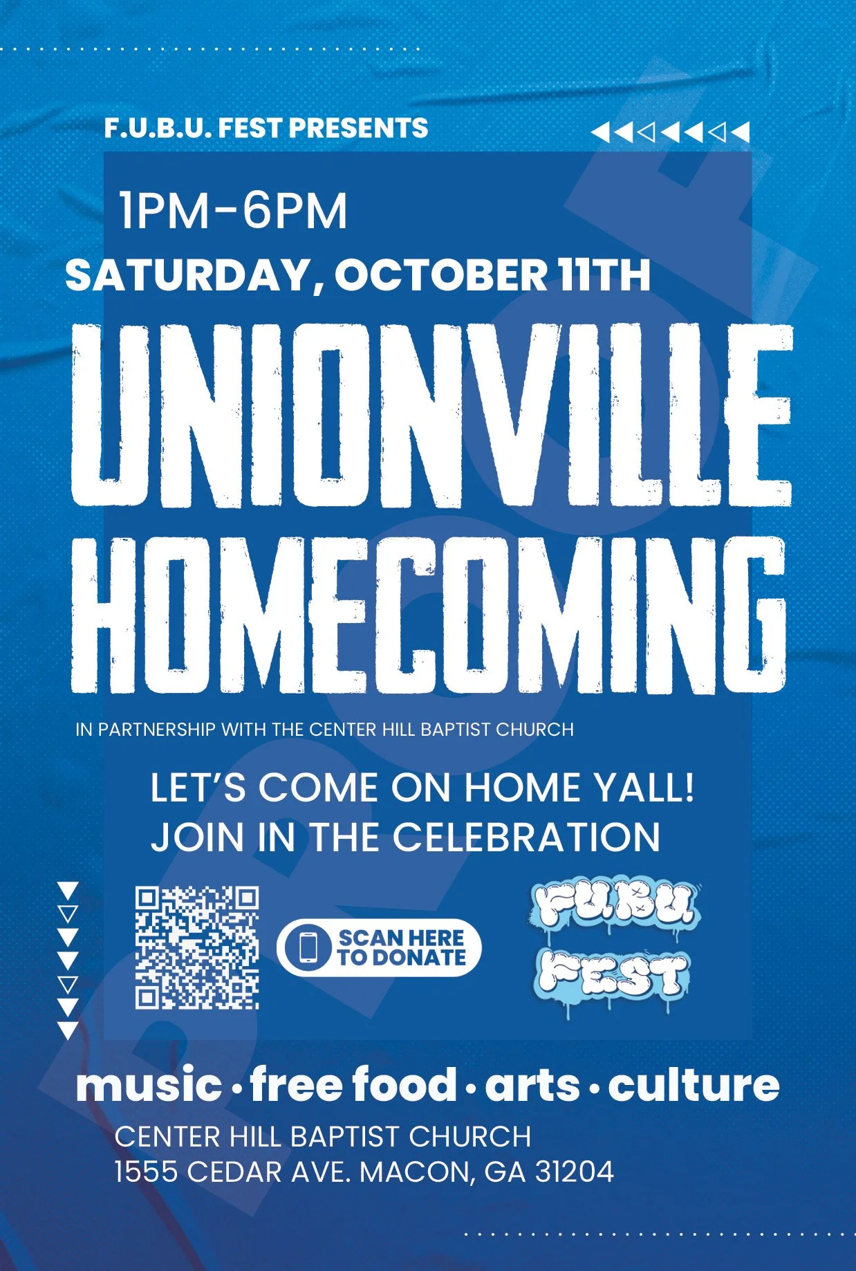 F.U.B.U. Fest is a direct response to these disparities. By bringing high-quality arts programming into Unionville, the festival fosters local pride, challenges dominant narratives of poverty and violence, and demonstrates the vibrancy of Black creativity in Macon. As a former resident of Unionville, I believe this neighborhood deserves celebration, investment, and recognition—not just for its challenges, but for its resilience, culture, and artistry. F.U.B.U. Fest is more than an event; it is a movement to reclaim space, build community, and ensure that Unionville is seen, heard, and valued.